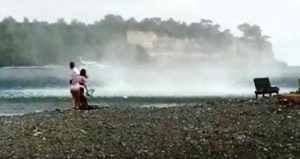 Antalya’da denizde çıkıp kıyıdaki tatilcilerin üzerine doğru gelen hortum panik oluşturdu. Hem korkan hem de hortumu kaydeden tatilciler, hortum kaybolduktan sonra rahat bir nefes aldılar. Görüntüyü çeken vatandaşlar, ‘İlk kez böyle bir şey görüyorum’ diyerek yaşadıklarını anlattı.