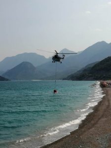 Çevredeki vatandaşların haber vermesi üzerine yangına, 2 helikopter, arazöz, orman işçileri ve itfaiye ekipleri müdahale ediyor.