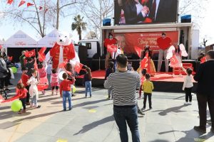 Cumhuriyet Sevgi Meydanı’nda çocuklar için de renkli etkinlikler düzenlendi. Çizgi film kahramanları animasyonlarıyla minikleri eğlendirirken, masal okuma etkinliği de düzenlendi. Masallar, çocuklar tarafından büyük bir ilgiyle dinlendi.