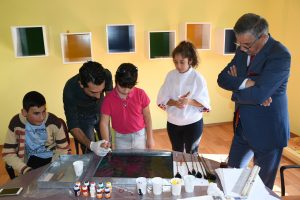 Kemer Belediye Başkanı Necati Topaloğlu, Umut Su Rehabilitasyon Merkezi’ndeki özel çocuklarla ebru çalışması yaptı.