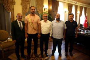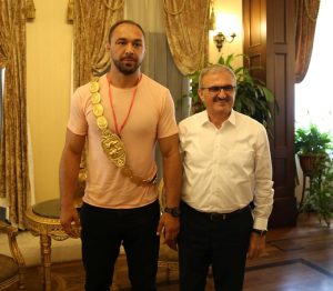 Edirne’de gerçekleşen 658. Tarihi Kırkpınar Yağlı Güreşleri’nde başpehlivanlığı elde eden Ali Gürbüz, Antalya Valisi Münir Karaloğlu’nu ziyaret etti.