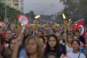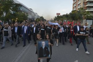 Antalya’da Muratpaşa Belediyesi’nin düzenlendiği 10 Kasım Ata’ya Saygı Yürüşü’nde binler buluştu. Ellerinde meşaleler ve metrelerce uzanan Atatürk posterleri, Türk bayraklarıyla Antalyalılar, Atatürk Kent Meydanı’ndan Erdal İnönü Kent Parkı’nda 4.5 kilometrelik yolu aydınlattı. Belediye Başkanı Ümit Uysal da eşi Ümran Uysal’la birlikte kortejin en önünde yer aldı.