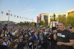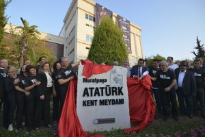 Muratpaşa’da anma etkinlikleri, Muratpaşa Kent Meydanı’na Atatürk Kent Meydanı isminin verildiği törenle devam etti. Belediye meclisinden oy birliğiyle geçen kararla ilgili olarak belediye meclis üyeleri önce tek tek meydanda kurulan sahneye davet edildi. Sonrasında sahneye gelen Başkan Uysal ise konuşmasında şunları söyledi: