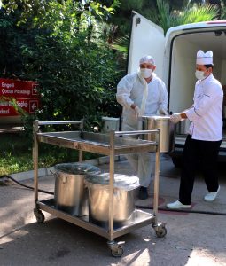 Vatandaşların sağlığı için özverili bir şekilde korona virüse karşı mücadele eden sağlık çalışanlarının yanında olan Büyükşehir Belediyesi, Muharrem ayı dolayısıyla hazırlanan aşureleri de sağlık çalışanlarına ulaştırdı. Büyükşehir Belediyesi Aşevinde hijyenik koşullarda hazırlanan aşureler, Antalya Büyükşehir Belediyesi Sosyal Hizmetler Dairesi personelleri tarafından yine hijyenik bir şekilde hastanelere teslim edildi. Kepez Devlet Hastanesi’ne 600, Atatürk Devlet Hastanesi’ne 600 ve Akdeniz Üniversitesi Tıp Fakültesi Hastanesi’ne 2 bin 200 olmak üzere toplam 3 bin 400 kişilik aşure ulaştırıldı.