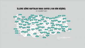 Yüz binde 100’ün üstünde vaka seyri görülen iller: Adıyaman, Tokat, Karaman, Osmaniye, Samsun, Giresun, Ordu, Rize ve Trabzon.