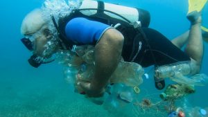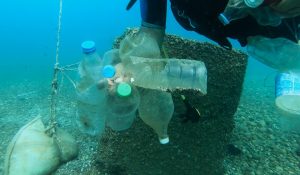Eğitim dalışlarında falezler altında büyük kirlilikle de karşılaştıklarına değinen Gökoğlu, falez kayalıklarına yakın bazı bölümlerde şişelerden oluşan çöp dağları bulunduğunu kaydetti.(AA)ANTALYA