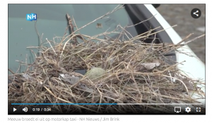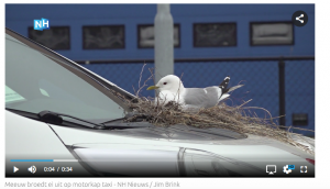 ‘‘Een Alkmaarse meeuw heeft een wel heel bijzondere broedplaats gevonden: op de motorkap van een taxi tussen de ruitenwissers besloot de meeuw een nest te bouwen om haar ei uit te broeden…’’