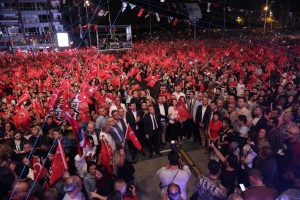 Fener alayının ardından Büyükşehir Belediyesi tarafından Cumhuriyet Meydanı’nda Volkan Konak konseri düzenlendi. On binlerin ellerinde Türk Bayrakları ile akın ettiği Cumhuriyet Meydanı kırmızı beyaza boyandı. Büyük coşkunun yaşandığı meydanda muhteşem görüntüler oluştu.