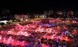 Antalya’da, Muratpaşa Belediyesi’nin 29 Ekim Cumhuriyet Bayramı kutlamalarında arabalarıyla 25 bin metrekarelik meydanı dolduran Antalyalıların, Belediye Başkanı Ümit Uysal ve sanatçı Tolga Çandar’ın birlikte seslendiği Gençlik Marşı’na meşaleler, arabalarının farları ve cep telefonları fenerleriyle eşlik etmesi nefes kesen görüntülere sahne oldu.
